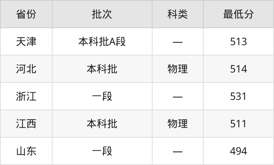 南昌工程学院香料香精技术与工程专业在全国各省最低录取分数线为494分(山东),除此之外,在其余地区的最低分为江西物理类511分、天津513分、河北物理类514分、浙江531分,以上数据均为2024年数据,供2025年高考生参考。