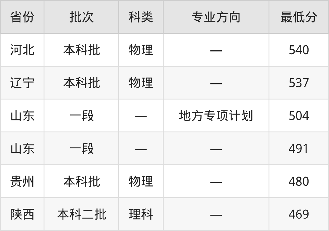 山东建筑大学智能建造专业录取分数线从469分到540分不等,最低分数线如下: