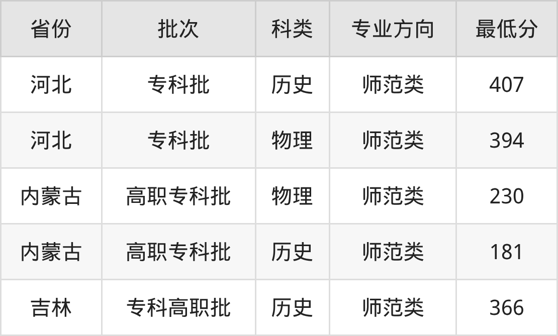 兴安职业技术大学小学语文教育专业录取分数线从181分到407分不等,最低分数线如下: