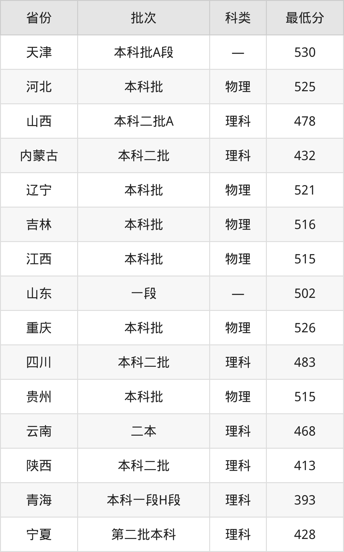 内蒙古:理科最低432分
