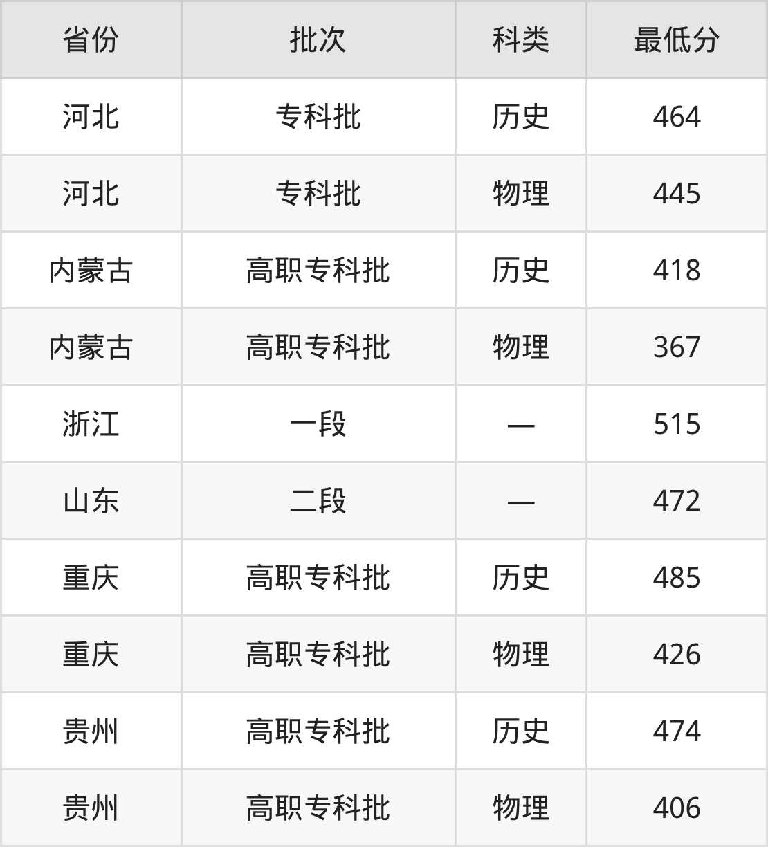 武汉警官职业学院法律事务专业在全国各省最低录取分数线为367分(内蒙古物理类),除此之外,在其余地区的最低分为河北物理类445分、浙江515分、山东472分、重庆物理类426分等,以上数据均为2025年数据,供2026年高考生参考。
