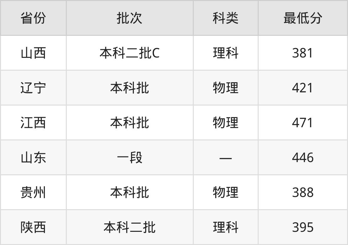 广州新华学院数字媒体技术专业在全国各省最低录取分数线为381分(山西理科),除此之外,在其余地区的最低分为江西物理类471分、山东446分、贵州物理类388分、陕西理科395分等,以上数据均为2024年数据,供2025年高考生参考。