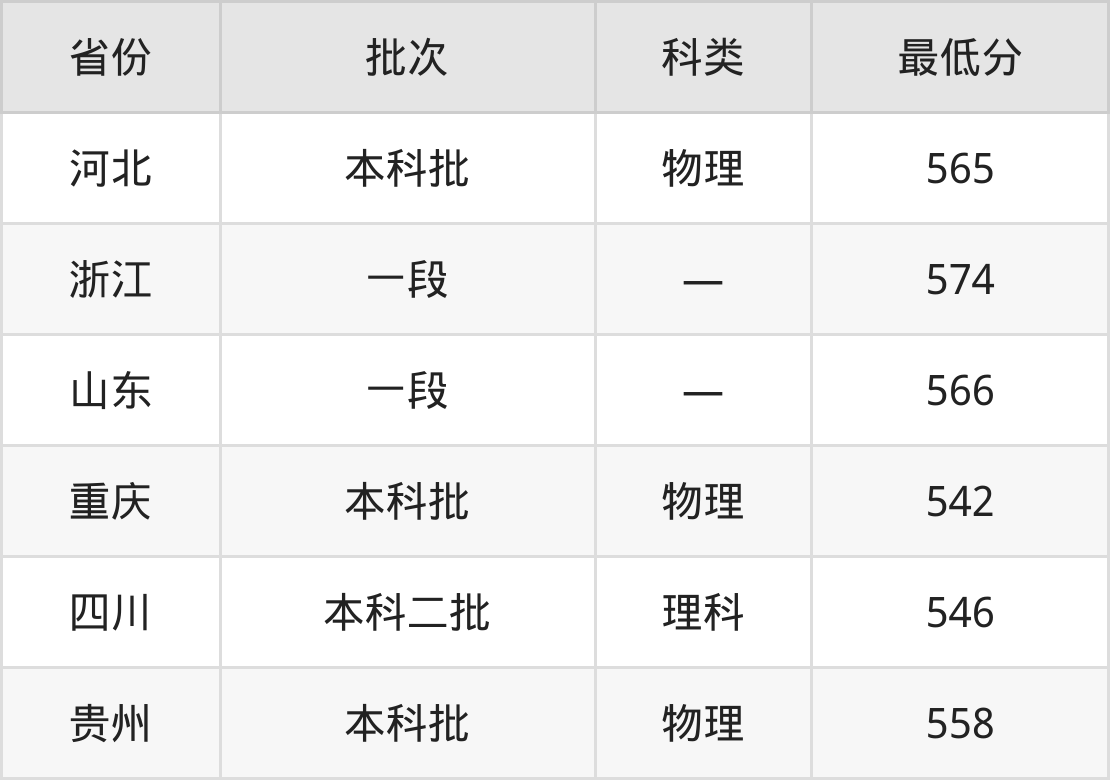 重庆理工大学数学与应用数学专业在全国各省最低录取分数线为542分(重庆物理类),除此之外,在其余地区的最低分为河北物理类565分、浙江574分、山东566分、四川理科546分等,以上数据均为2024年数据,供2025年高考生参考。