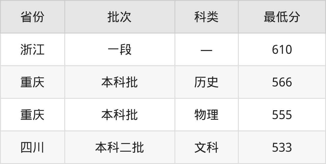 广东海洋大学法学专业在全国各省最低录取分数线为533分(四川文科),除此之外,在其余地区的最低分为浙江610分、重庆物理类555分,以上数据均为2024年数据,供2025年高考生参考。