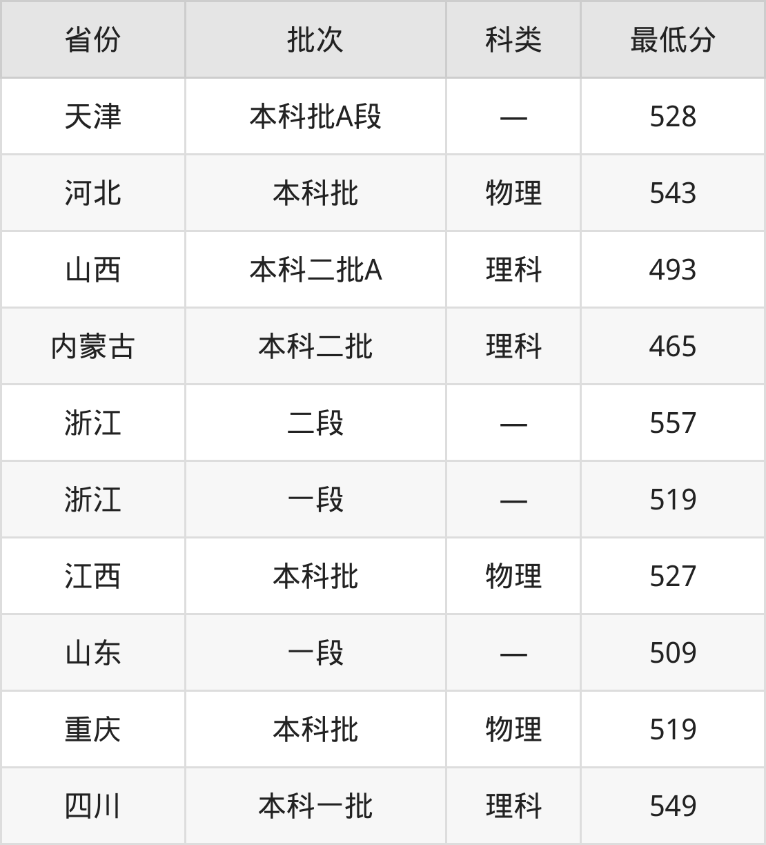 河南工业大学化学专业录取分数线从465分到557分不等,最低分数线如下: