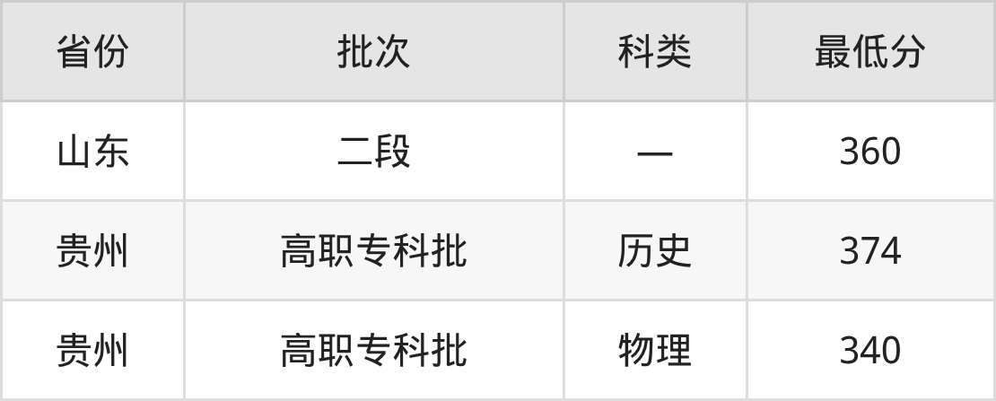 抚州职业技术学院空中乘务专业录取分数线从340分到374分不等,最低分数线如下: