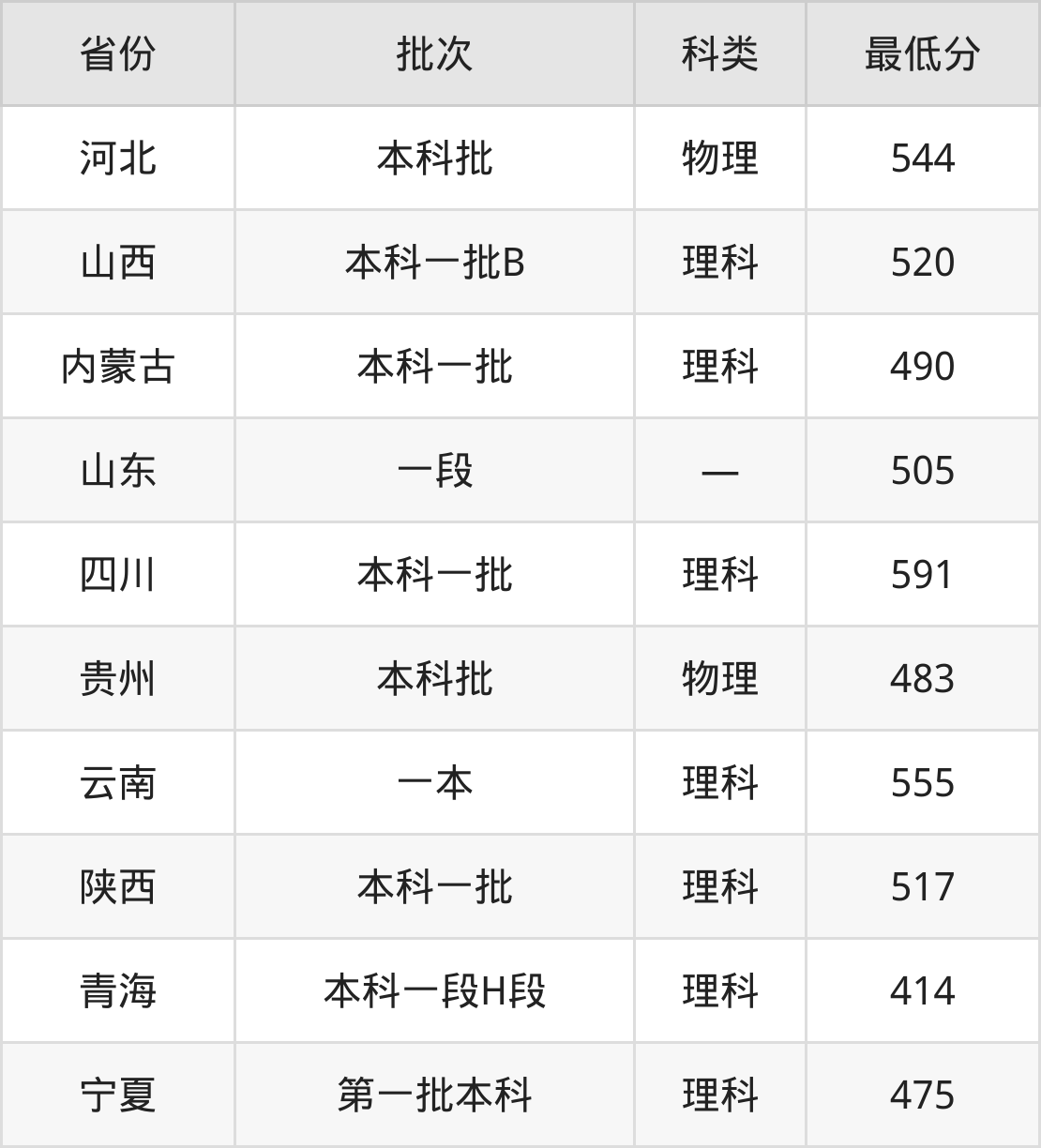 西安工业大学土木工程专业录取分数线从414分到591分不等,最低分数线如下: