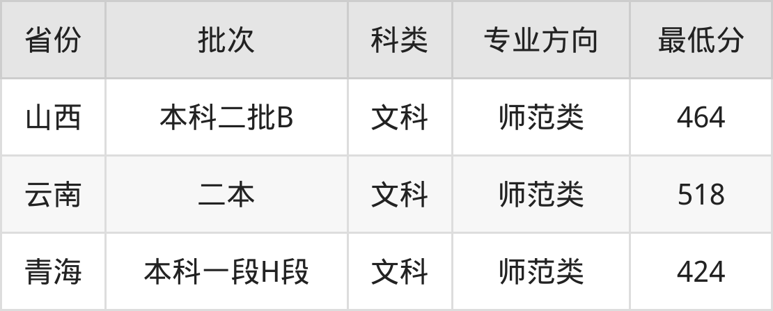 河西学院思想政治教育专业录取分数线从424分到518分不等,最低分数线如下:
