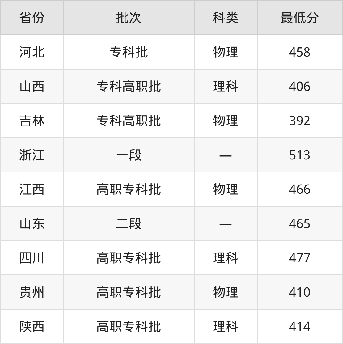 南京信息职业技术学院工业互联网应用专业在全国各省最低录取分数线为392分(吉林物理类),除此之外,在其余地区的最低分为河北物理类458分、浙江513分、陕西理科414分、贵州物理类410分等,以上数据均为2024年数据,供2025年高考生参考。