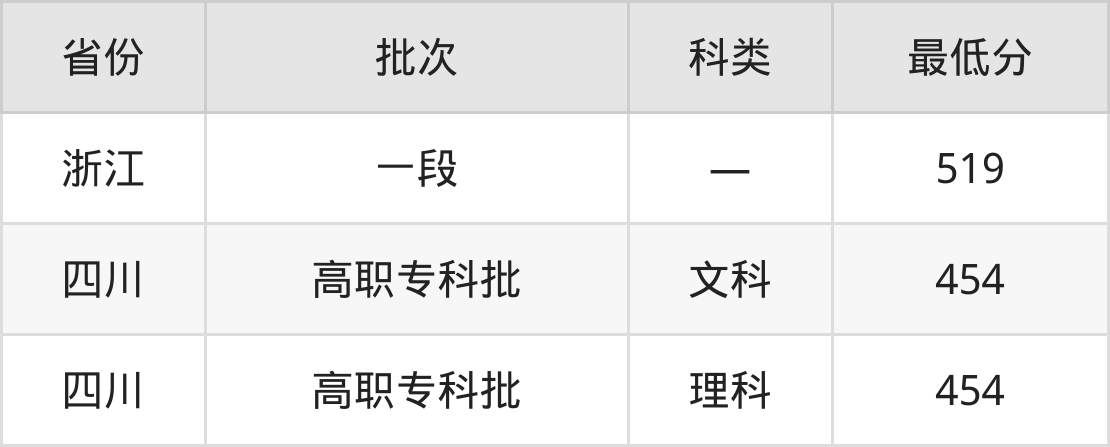 宁波卫生职业技术学院口腔医学技术专业在全国各省最低录取分数线为454分(四川文科),除此之外,在其余地区的最低分为浙江519分,以上数据均为2024年数据,供2025年高考生参考。