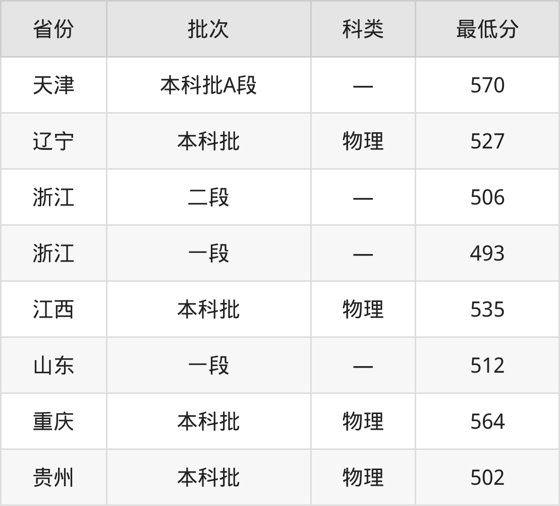 广东医科大学康复治疗学专业在全国各省最低录取分数线为493分(浙江),除此之外,在其余地区的最低分为天津570分、辽宁物理类527分、江西物理类535分、山东512分等,以上数据均为2024年数据,供2025年高考生参考。