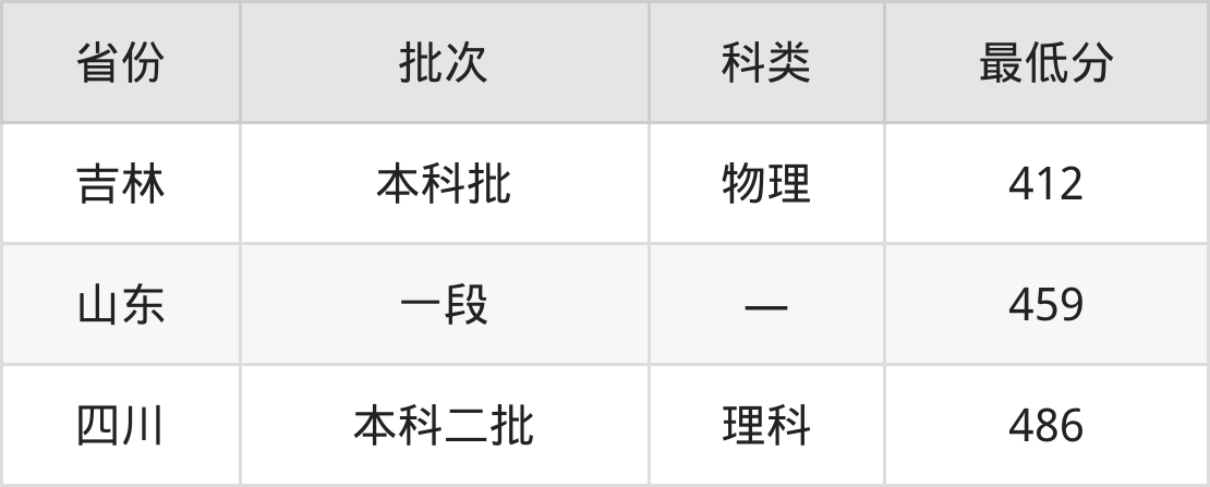 成都理工大学工程技术学院计算机科学与技术专业在全国各省最低录取分数线为412分(吉林物理类),除此之外,在其余地区的最低分为山东459分、四川理科486分,以上数据均为2024年数据,供2025年高考生参考。