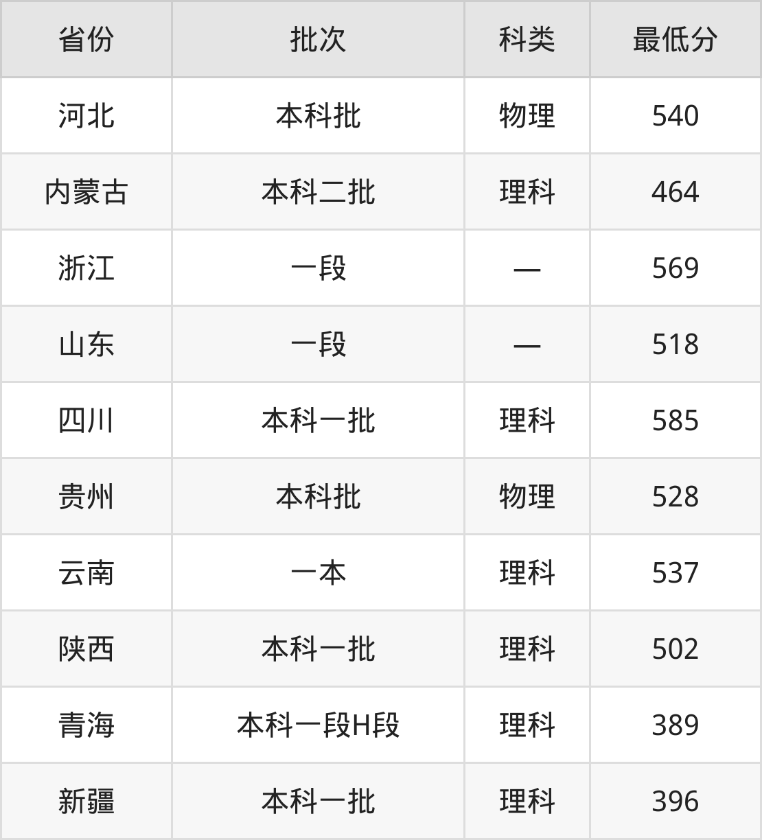 昆明理工大学测绘工程专业在全国各省最低录取分数线为389分(青海理科),除此之外,在其余地区的最低分为山东518分、陕西理科502分、浙江569分、内蒙古理科464分等,以上数据均为2024年数据,供2025年高考生参考。