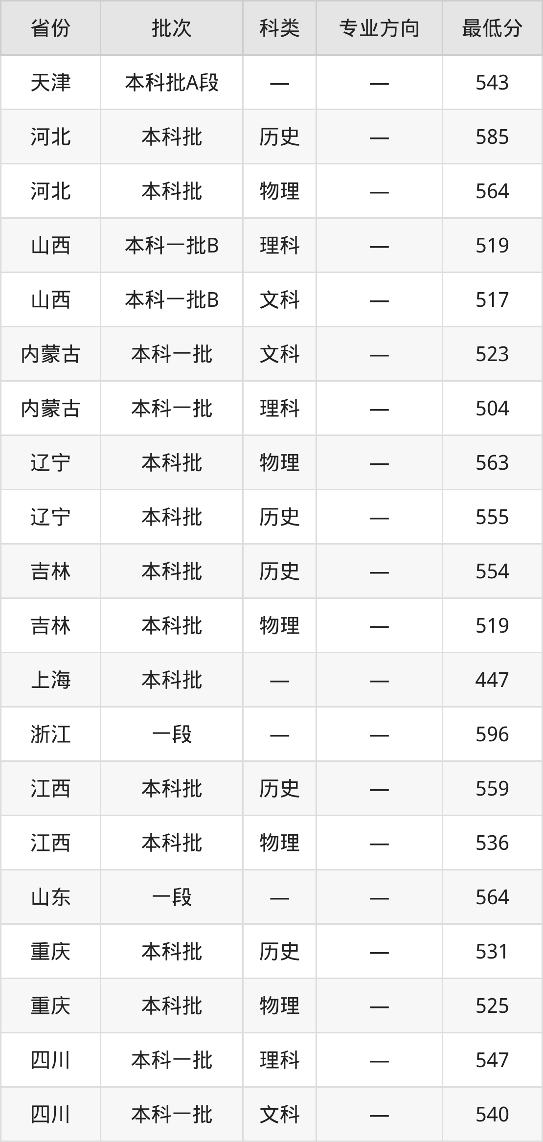 天津商业大学经济学类专业录取分数线从367分到596分不等,在部分地区的最低分数线如下: