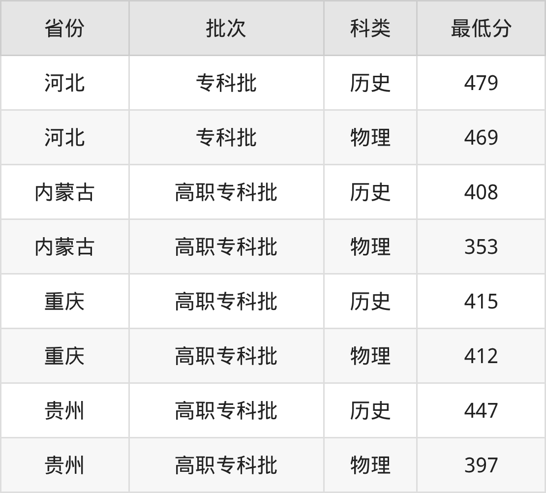 重庆水利电力职业技术学院发电厂及电力系统专业录取分数线从353分到479分不等,最低分数线如下: