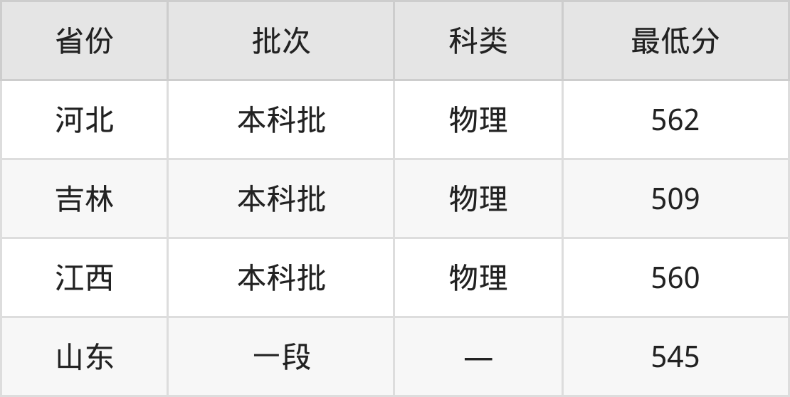 安徽工业大学车辆工程专业在全国各省最低录取分数线为509分(吉林物理类),除此之外,在其余地区的最低分为河北物理类562分、江西物理类560分、山东545分,以上数据均为2024年数据,供2025年高考生参考。