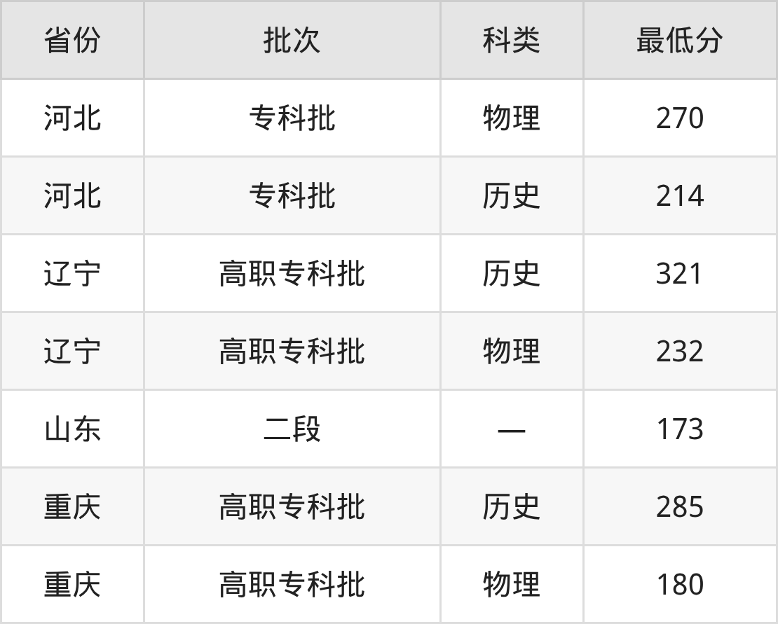 民办四川天一学院护理专业录取分数线从173分到321分不等,最低分数线如下: