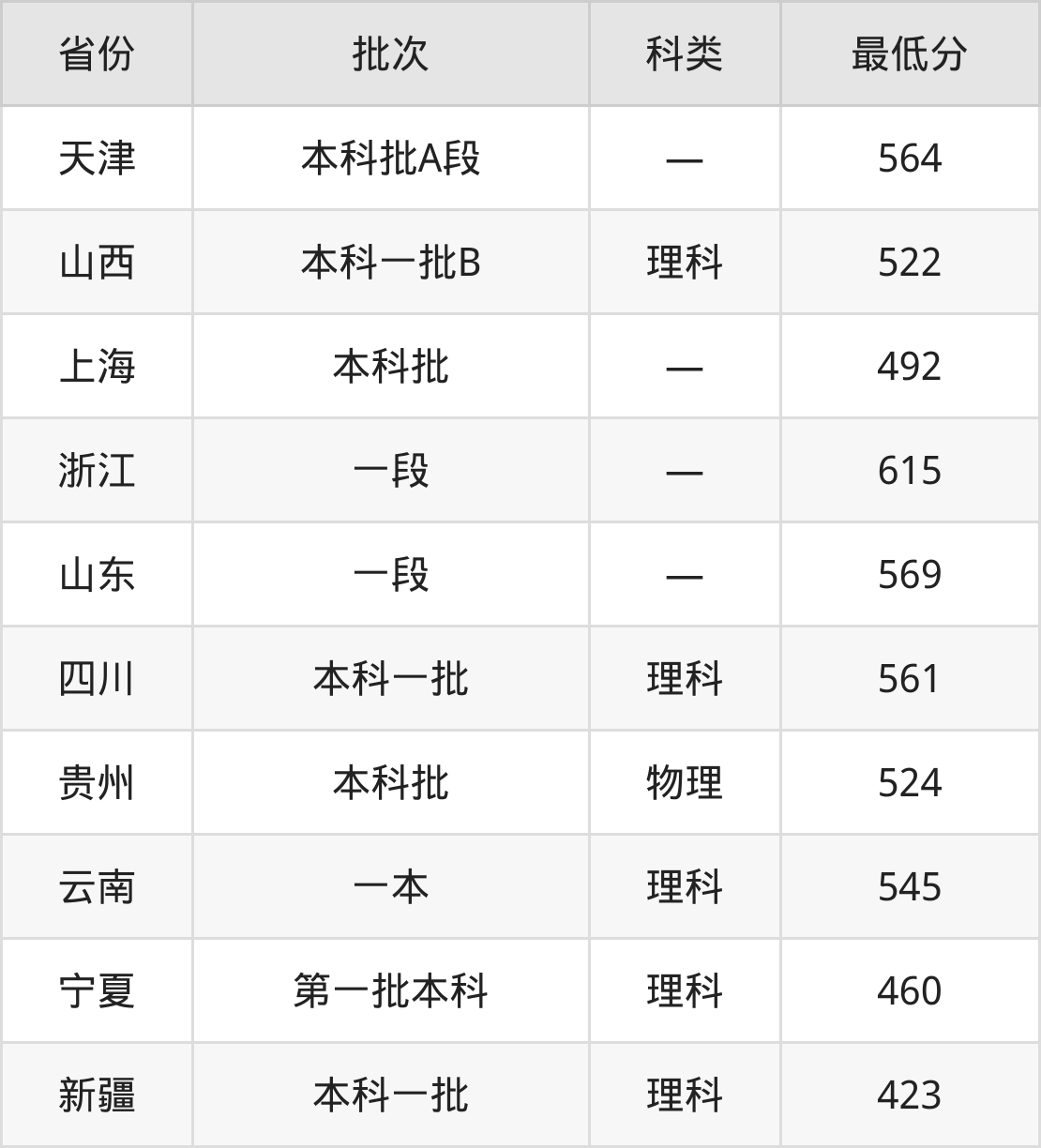 苏州科技大学建筑学专业在全国各省最低录取分数线为423分(新疆理科),除此之外,在其余地区的最低分为天津564分、浙江615分、山东569分、四川理科561分等,以上数据均为2024年数据,供2025年高考生参考。