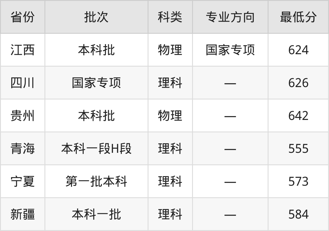 中山大学环境科学与工程类专业在全国各省最低录取分数线为555分(青海理科),除此之外,在其余地区的最低分为江西物理类624分、四川理科626分、贵州物理类642分、宁夏理科573分等,以上数据均为2024年数据,供2025年高考生参考。