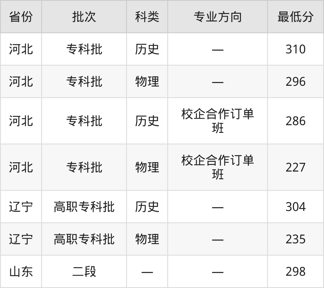 唐山海运职业学院大数据技术专业在全国各省录取分数线: