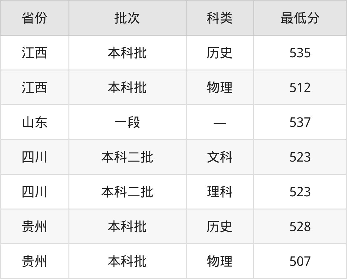 贵阳学院法学专业在全国各省最低录取分数线为507分(贵州物理类),除此之外,在其余地区的最低分为江西物理类512分、山东537分、四川文科523分,以上数据均为2024年数据,供2025年高考生参考。