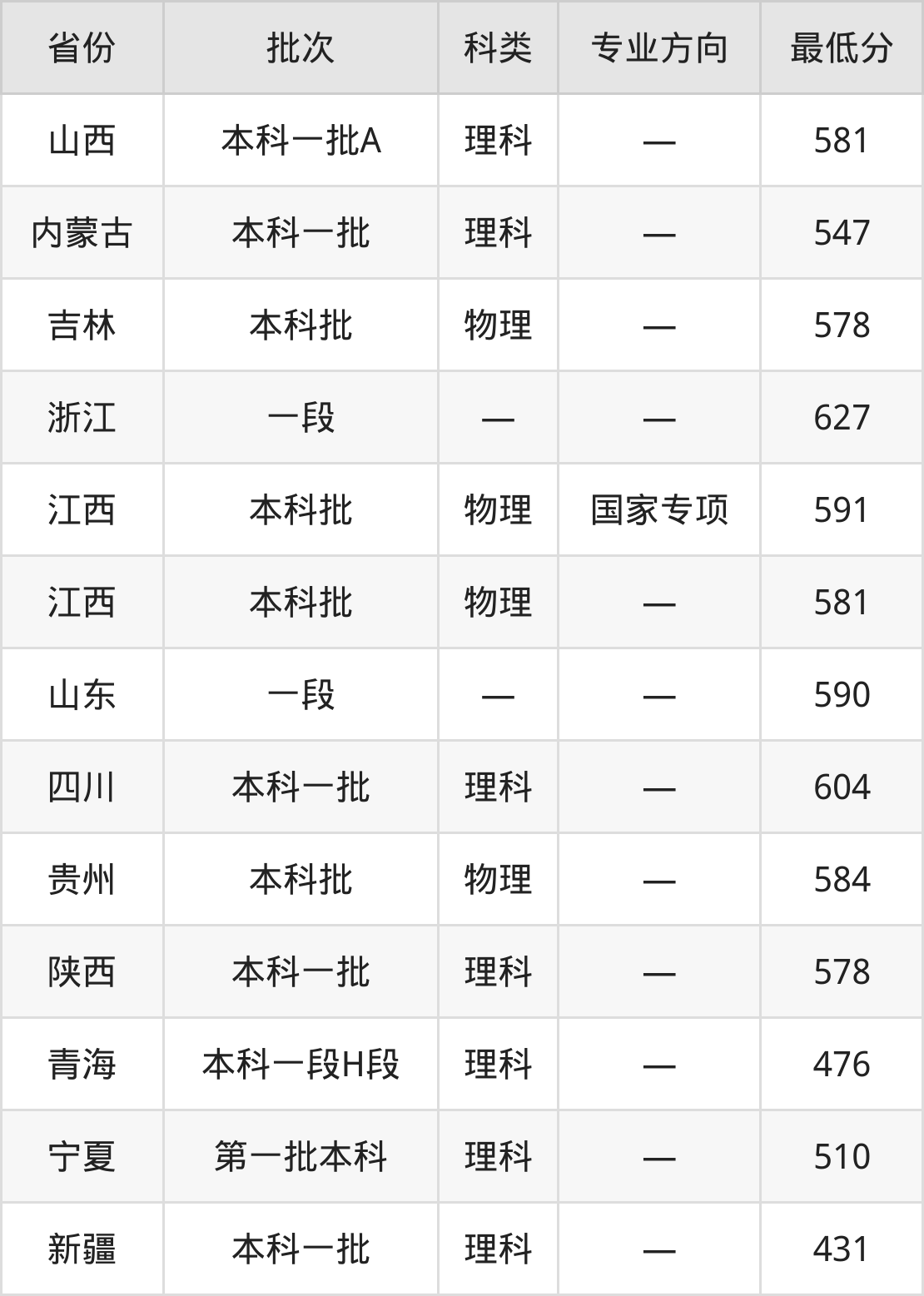 南昌大学药学专业在全国各省最低录取分数线为431分(新疆理科),除此之外,在其余地区的最低分为浙江627分、山东590分、四川理科604分、陕西理科578分等,以上数据均为2024年数据,供2025年高考生参考。