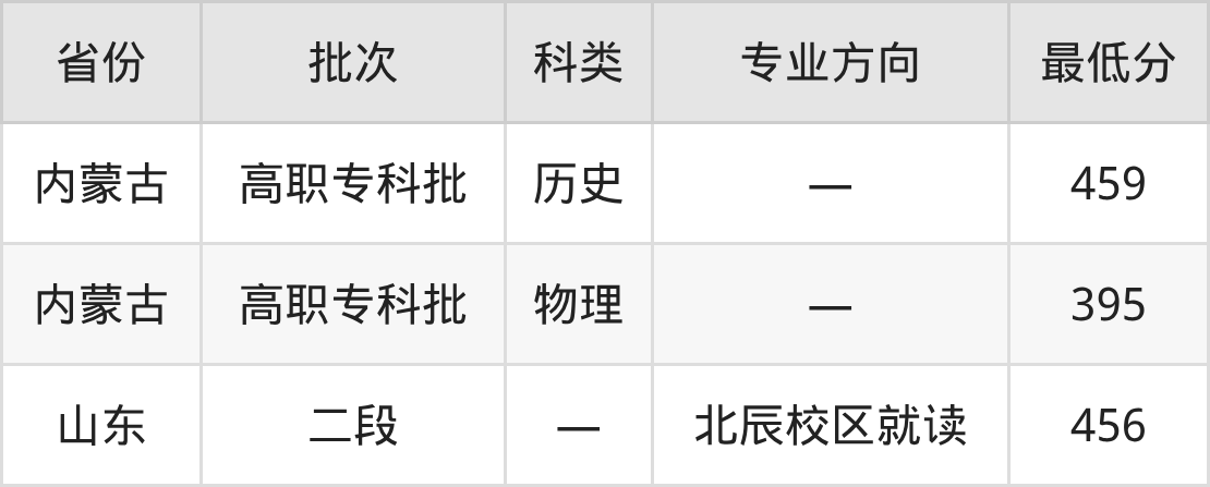 天津市职业大学模具设计与制造专业录取分数线从395分到459分不等,最低分数线如下: