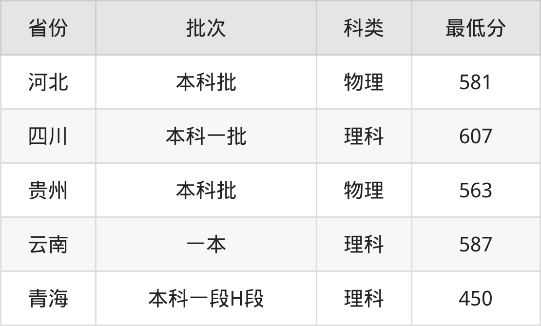 合肥工业大学环境工程专业在全国各省最低录取分数线为450分(青海理科),除此之外,在其余地区的最低分为河北物理类581分、四川理科607分、贵州物理类563分、云南理科587分等,以上数据均为2024年数据,供2025年高考生参考。