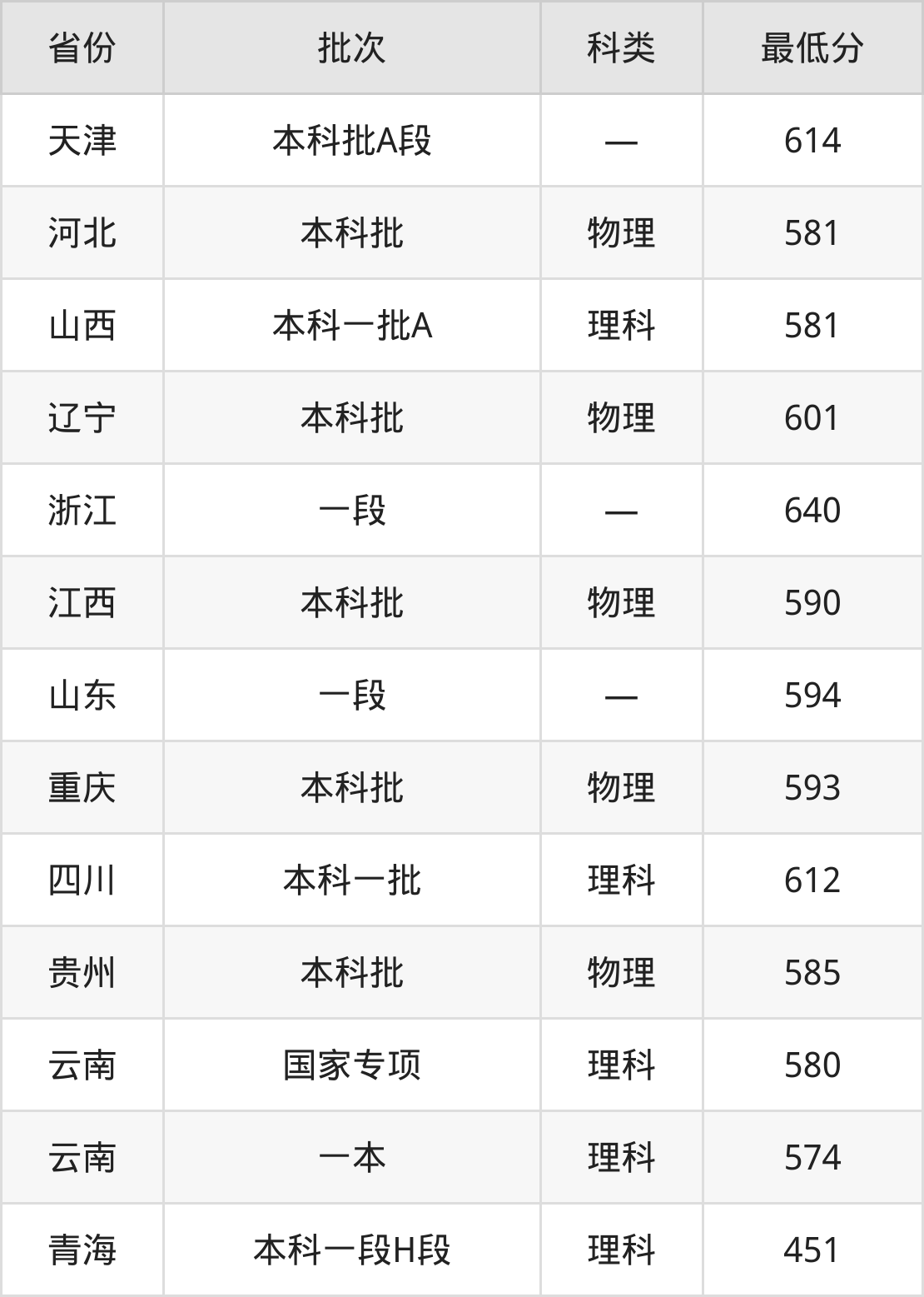 云南大学地理信息科学专业录取分数线从451分到640分不等,在部分地区的最低分数线如下: