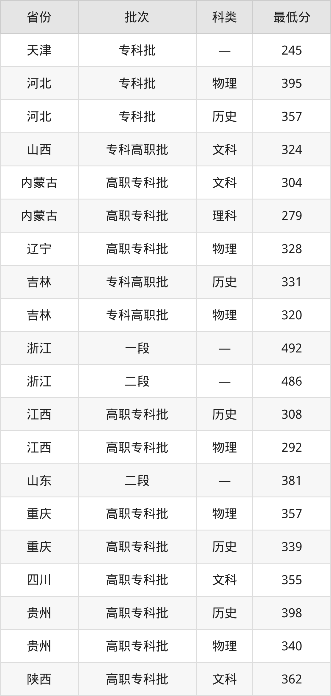 南昌理工学院护理专业录取分数线从245分到492分不等,在部分地区的最低分数线如下: