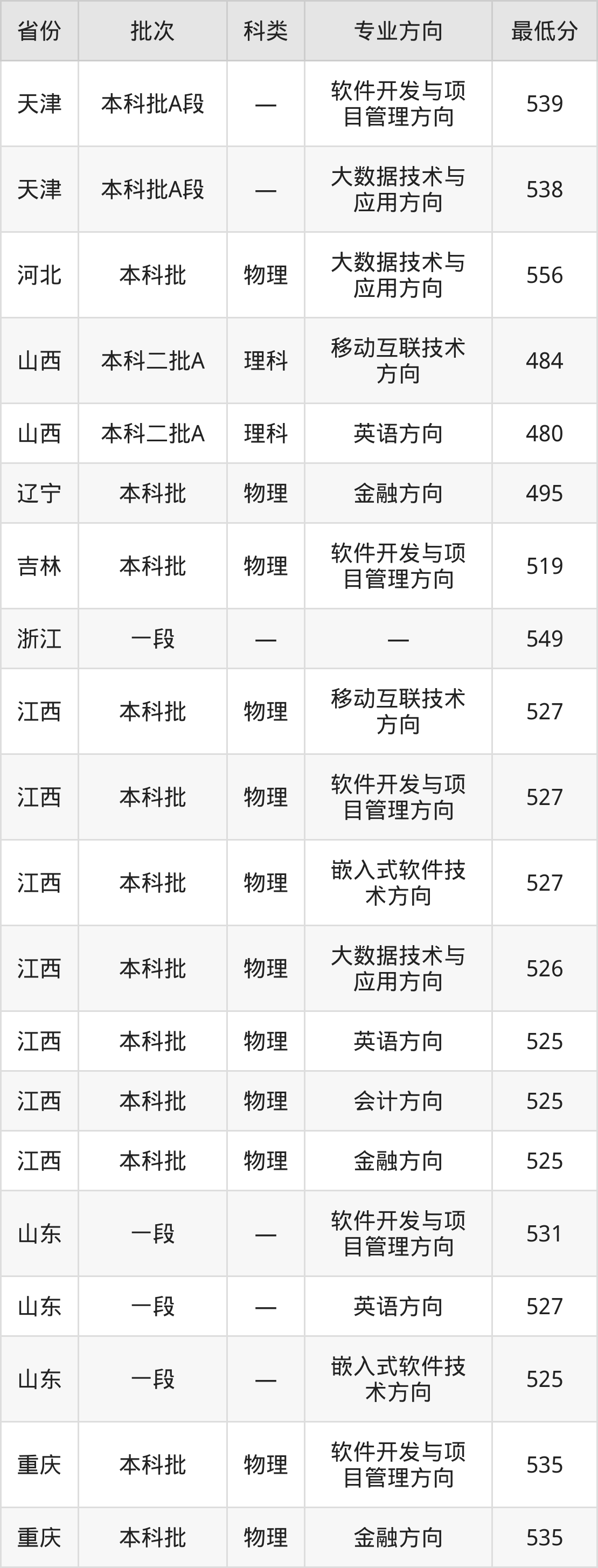 江西农业大学软件工程专业录取分数线从401分到563分不等,在部分地区的最低分数线如下: