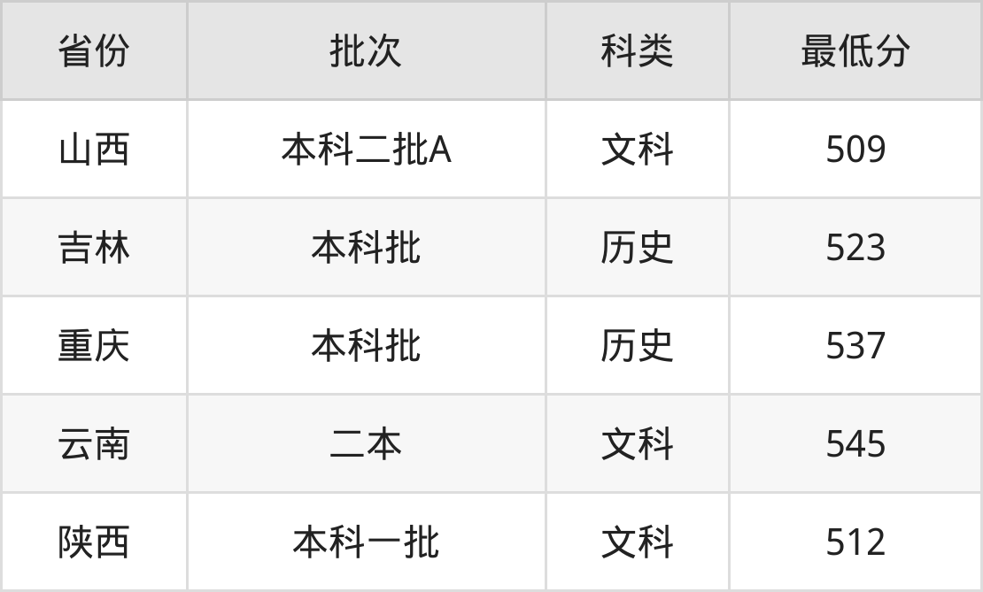 延安大学政治学与行政学专业在全国各省录取分数线: