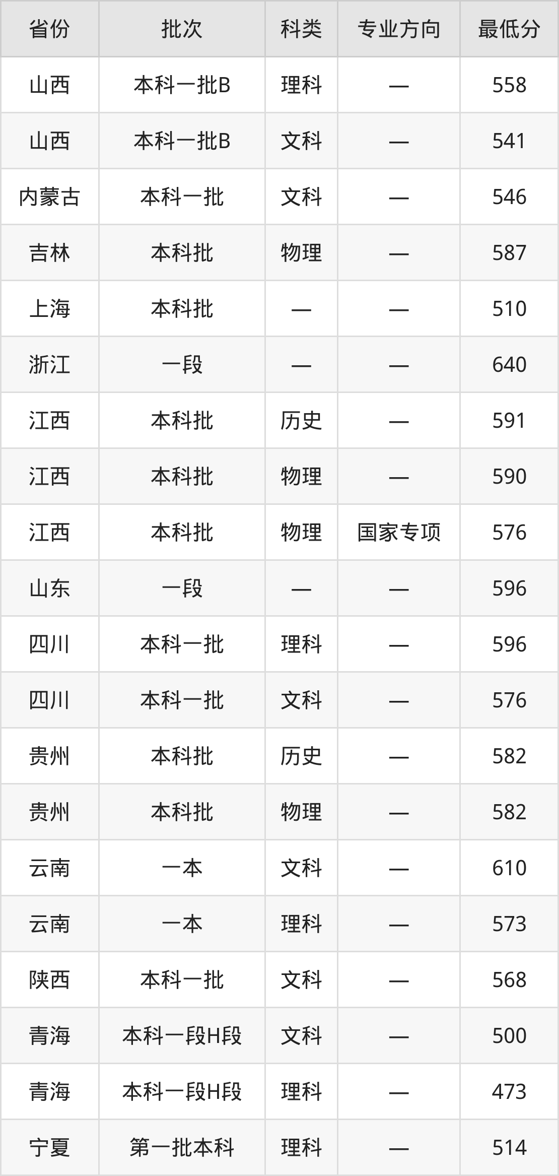 南京审计大学财务管理专业录取分数线从473分到640分不等,在部分地区的最低分数线如下: