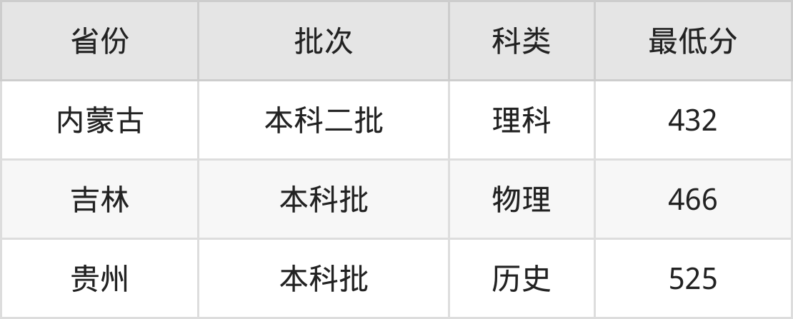吉首大学护理学专业录取分数线从432分到525分不等,最低分数线如下: