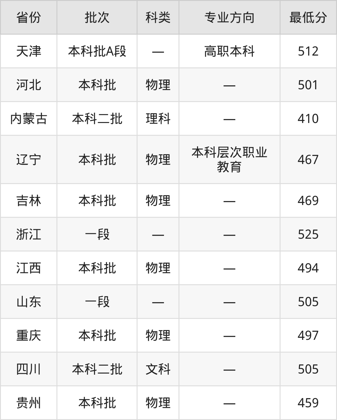 民政职业大学康复辅助器具技术专业录取分数线从410分到525分不等,在部分地区的最低分数线如下: