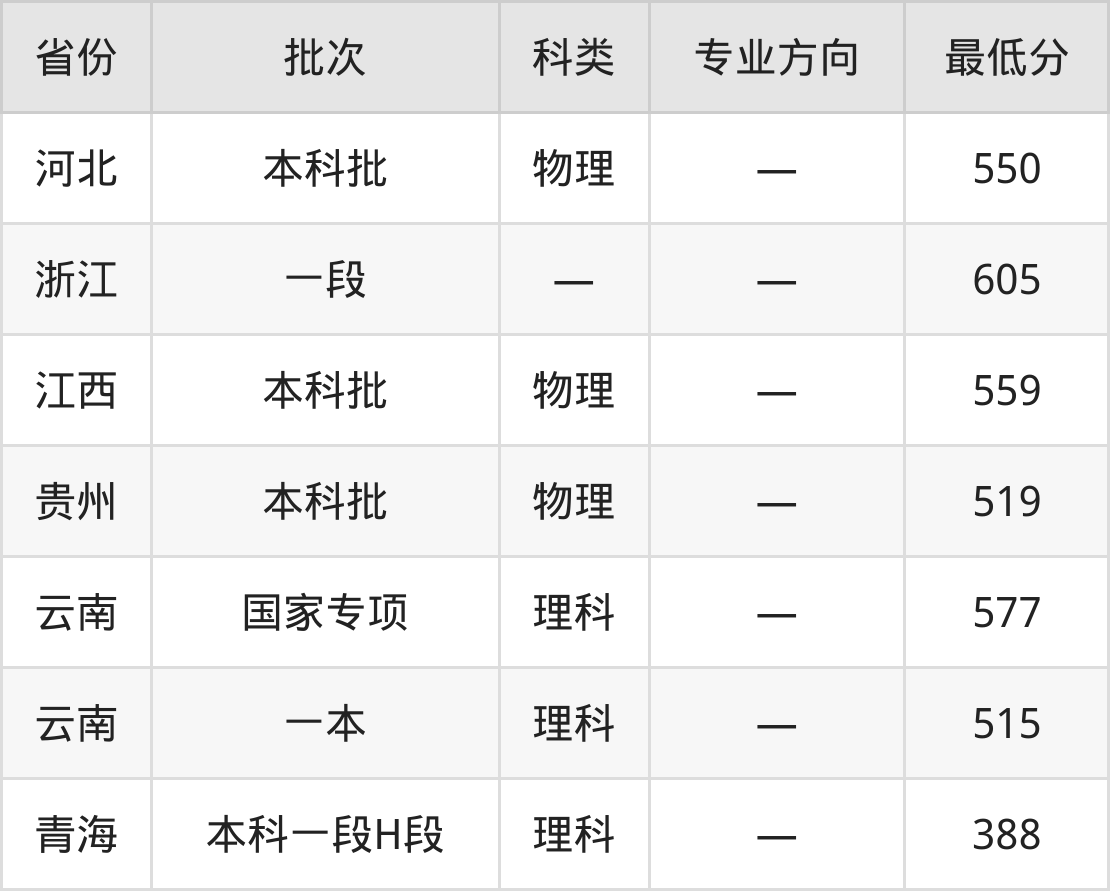 浙江理工大学建筑类专业在全国各省最低录取分数线为388分(青海理科),除此之外,在其余地区的最低分为云南理科515分、河北物理类550分、浙江605分、江西物理类559分等,以上数据均为2024年数据,供2025年高考生参考。