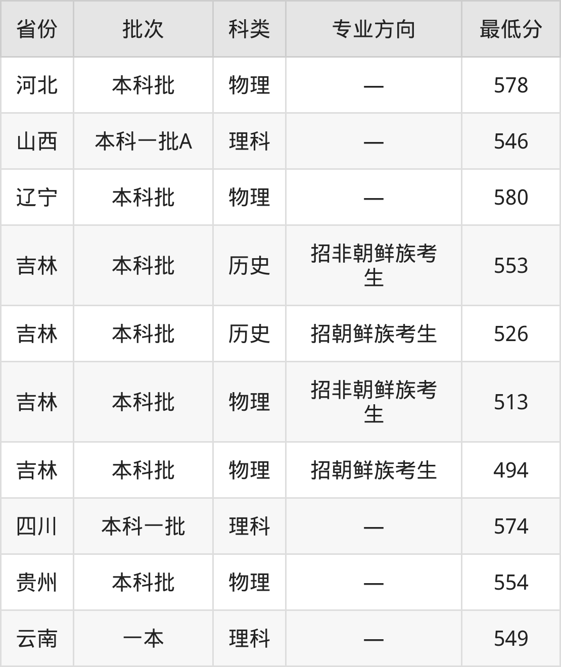 云南:理科最低549分