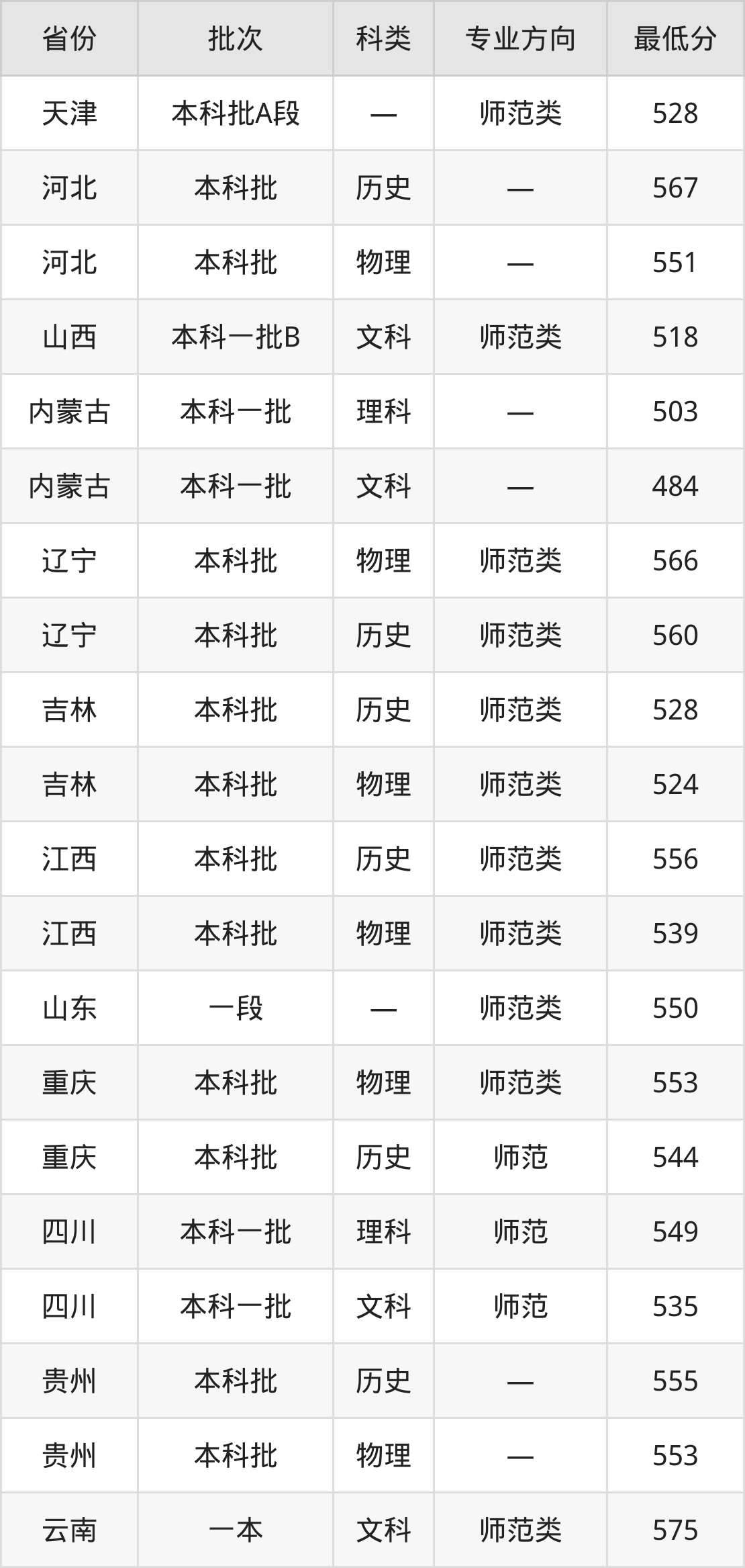海南师范大学英语专业录取分数线从417分到575分不等,在部分地区的最低分数线如下: