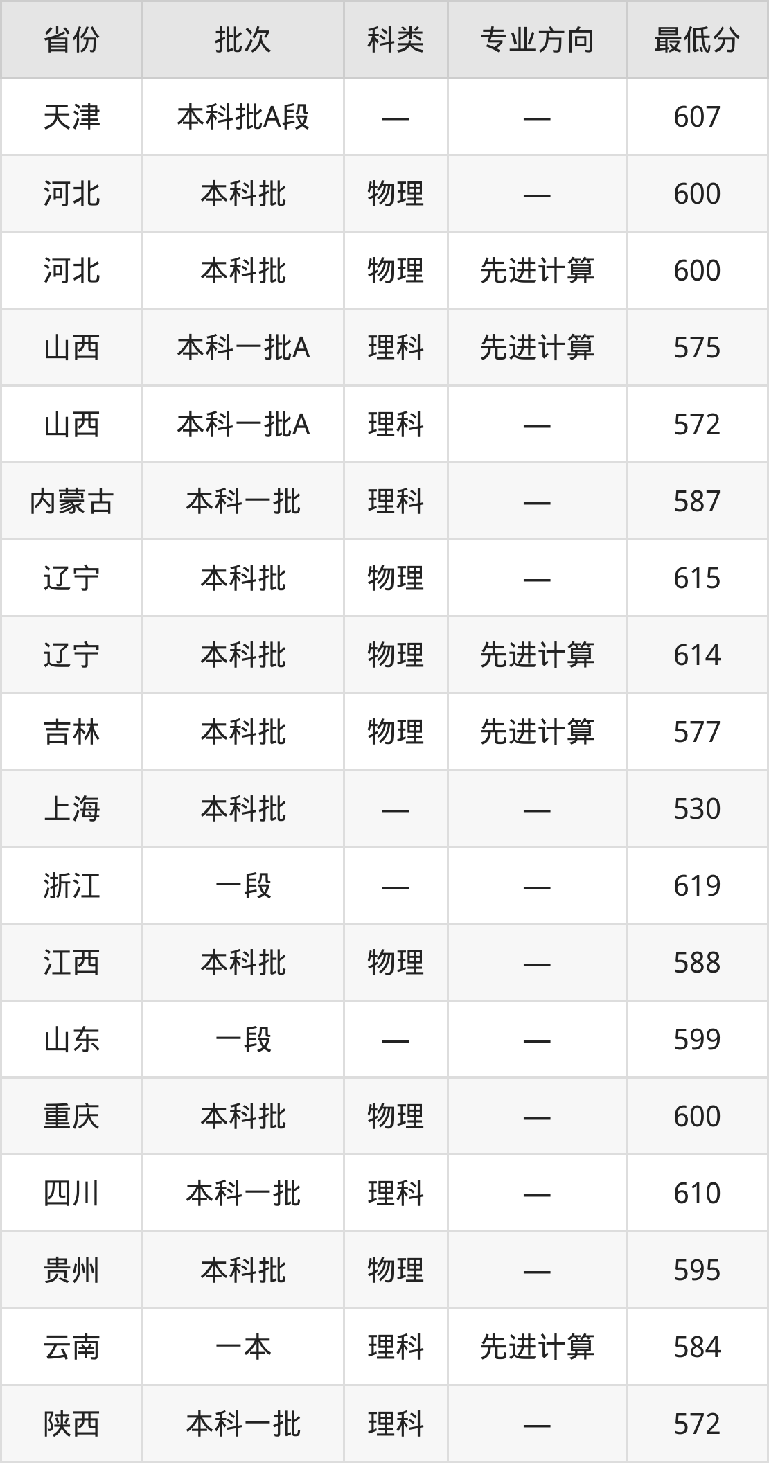 山西大学计算机科学与技术专业在全国各省录取分数线:
