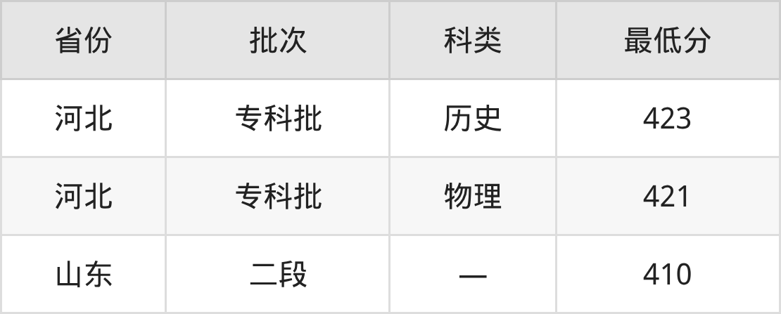 塔里木职业技术学院护理专业在全国各省最低录取分数线为410分(山东),除此之外,在其余地区的最低分为河北物理类421分,以上数据均为2025年数据,供2026年高考生参考。