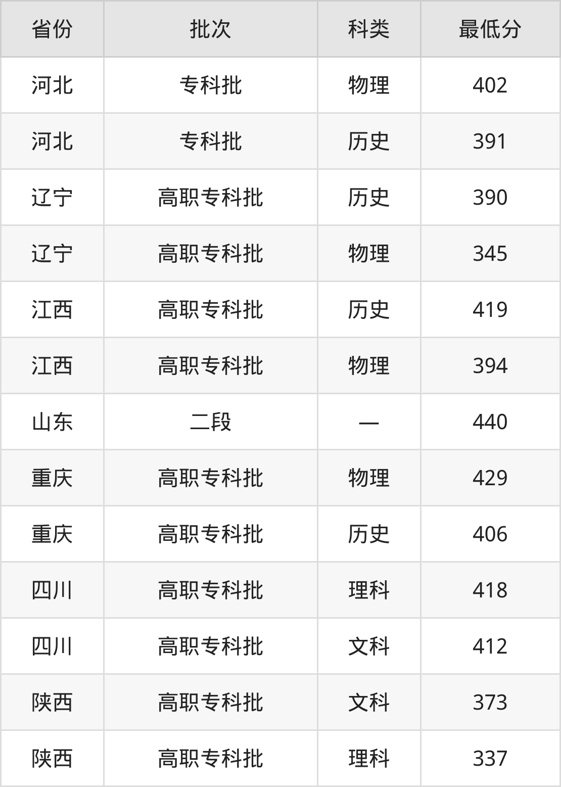 新疆警察学院安全保卫管理专业录取分数线从337分到440分不等,最低分数线如下: