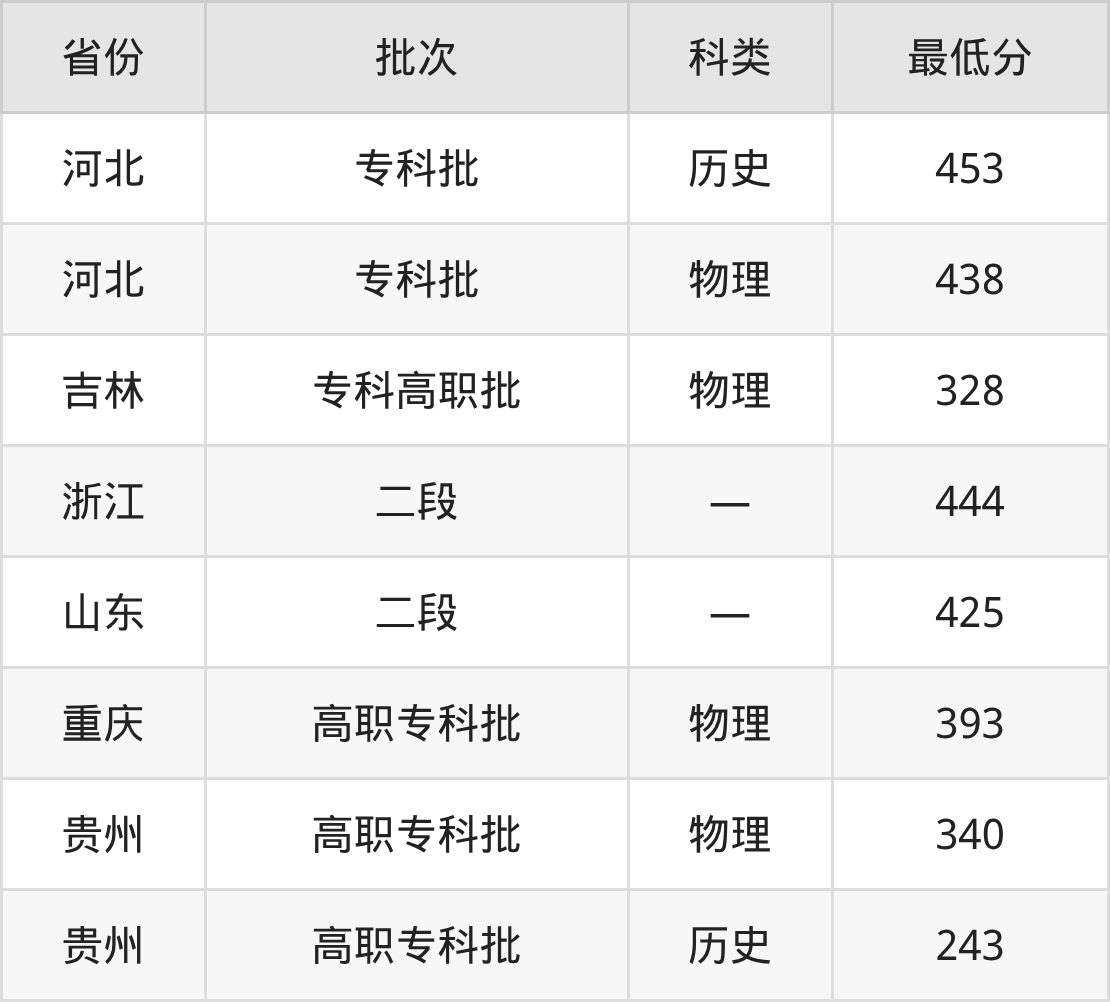 荆州理工职业学院机电一体化技术专业录取分数线从243分到453分不等,最低分数线如下: