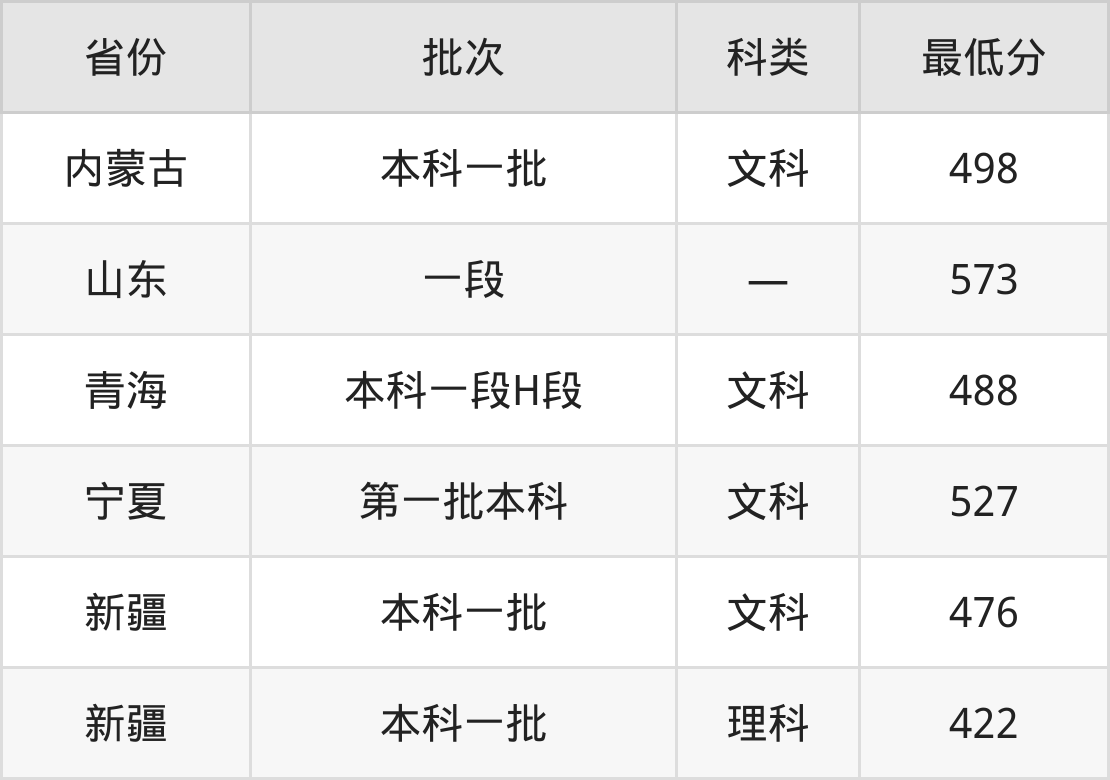 新疆大学考古学专业录取分数线从422分到573分不等,最低分数线如下: