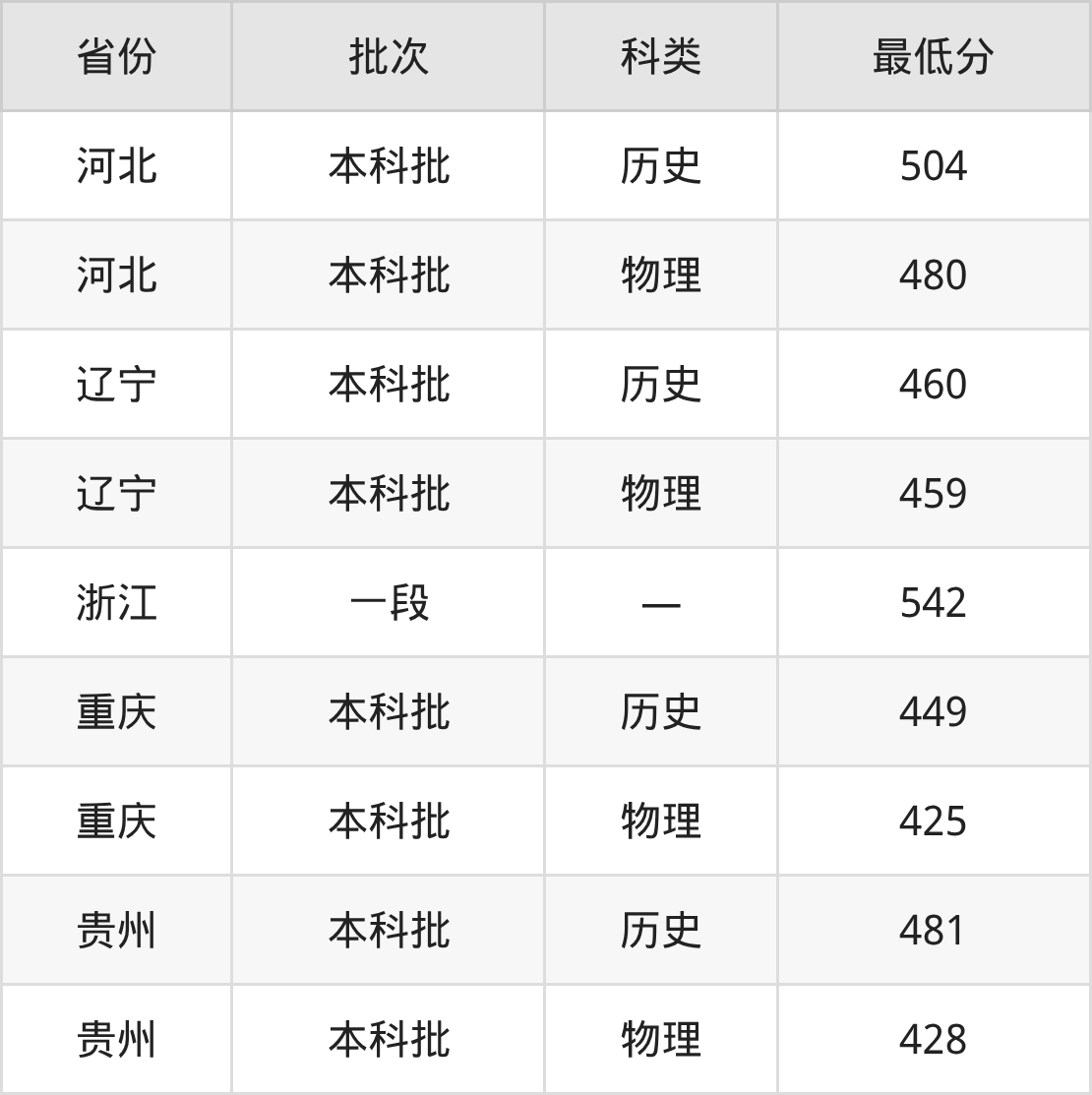 浙江:最低542分