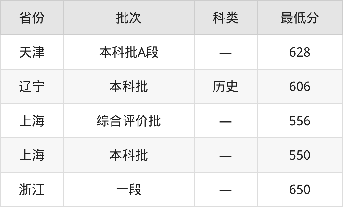 华东理工大学国际经济与贸易专业在全国各省最低录取分数线为550分(上海),除此之外,在其余地区的最低分为浙江650分、天津628分、辽宁历史类606分,以上数据均为2024年数据,供2025年高考生参考。