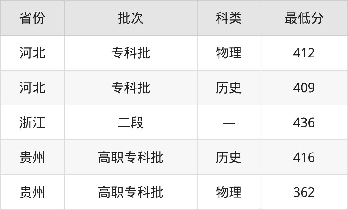 江西交通职业技术学院网络营销与直播电商专业在全国各省最低录取分数线为362分(贵州物理类),除此之外,在其余地区的最低分为浙江436分、河北历史类409分,以上数据均为2025年数据,供2026年高考生参考。