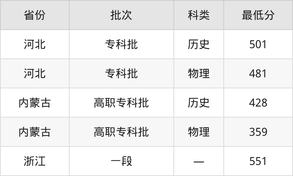 长沙民政职业技术学院心理咨询专业在全国各省最低录取分数线为359分(内蒙古物理类),除此之外,在其余地区的最低分为河北物理类481分、浙江551分,以上数据均为2025年数据,供2026年高考生参考。