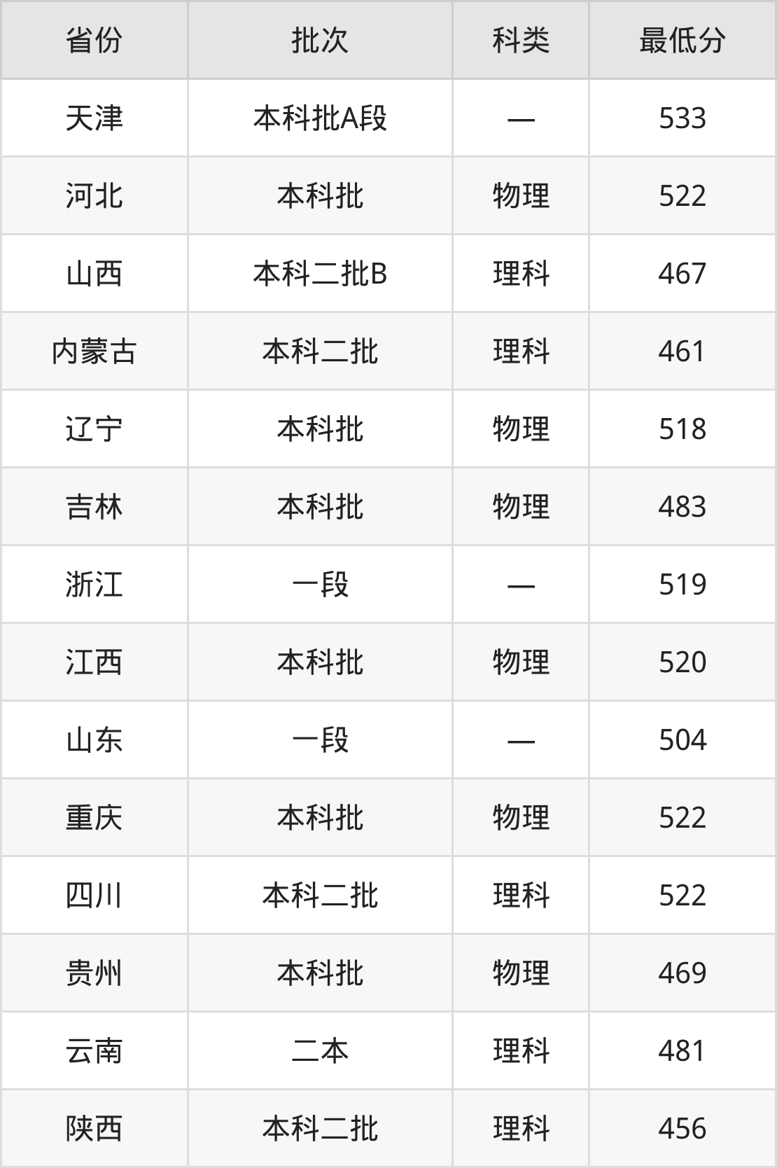 山西:理科最低467分