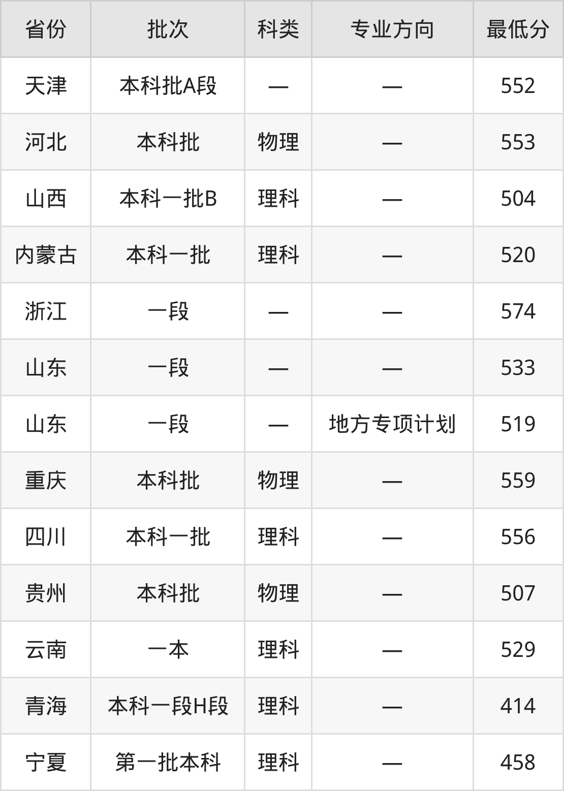济南大学化学类专业录取分数线从414分到574分不等,在部分地区的最低分数线如下: