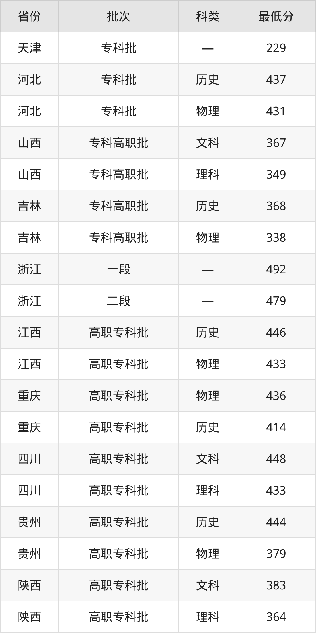 武汉交通职业学院高速铁路客运服务专业录取分数线从229分到492分不等,最低分数线如下: